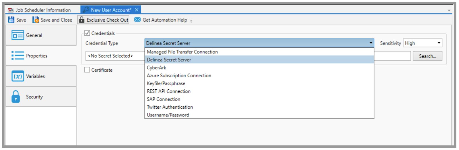 Delinea Secret Server users can leverage this Secret Management integration within ActiveBatch to: