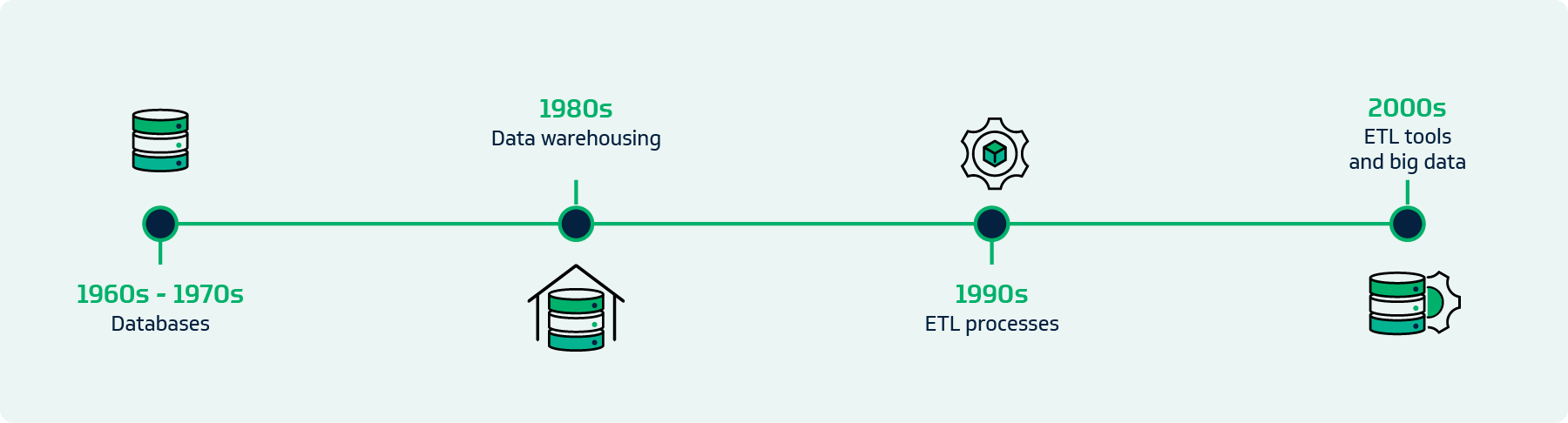 In the 1980s, the concept of data warehousing emerged. Now, IT teams and leaders could rely on a centralized repository to consolidate data. By the 1990s, growing amounts of data created a need for extract, transform and load (ETL) processes. More and more businesses found it essential to move data across disparate sources, transform it into a consistent format and load it into data warehouses.